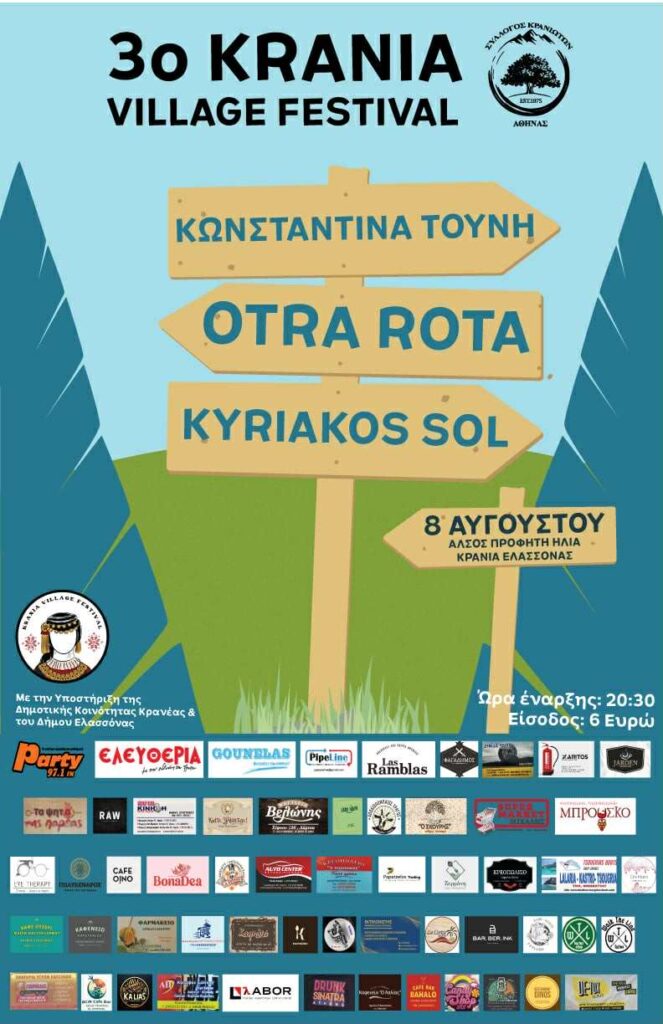 Ο Σύλλογος Κρανιωτων Αθήνας σας προσκαλεί στο Krania Village Festival, που επιστρέφει για τρίτη συνεχή χρονιά, ανανεωμένο και πιο εκρηκτικό από ποτέ, την Παρασκευή 8 Αυγούστου, στο μαγευτικό Άλσος του Προφήτη Ηλία, στην Κρανιά Ελασσόνας!!